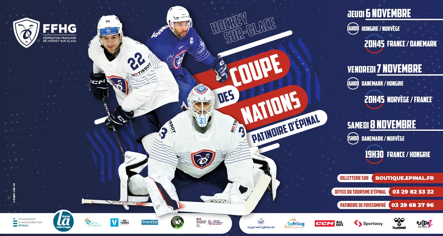 Maillots, T-shirts, sweats, bijoux, magnets, mugs... Découvrez l'ensemble des produits dérivés de la Fédération Française de Hockey sur glace !