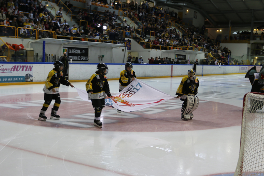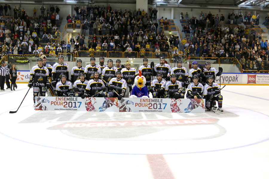 La patinoire de l’Île-Lacroix a officiellement donné le coup d’envoi du « We Can Be Heroes Tour ». Plus de 2500 spectateurs ont assisté au match Rouen-Gap, placé sous les couleurs du Championnat du Monde 2017. Sous les claps-claps « Ensemble pour 2017 » et le tifo géant déployé en tribunes, les spectateurs ont donné de la voix sous les caméras de l’Équipe 21.