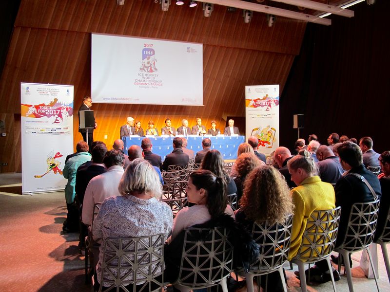 Le jeudi 13 octobre, au sein du prestigieux Salon Gustave Eiffel, situé au 1er étage de la Tour Eiffel, s’est tenue une conférence de presse pour lancer la promotion du Championnat du Monde de Hockey sur Glace 2017 de l’IIHF, à l’occasion de l’ouverture récente de la billetterie au Grand Public.