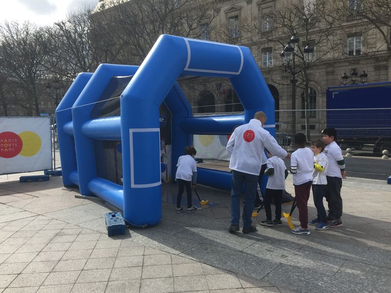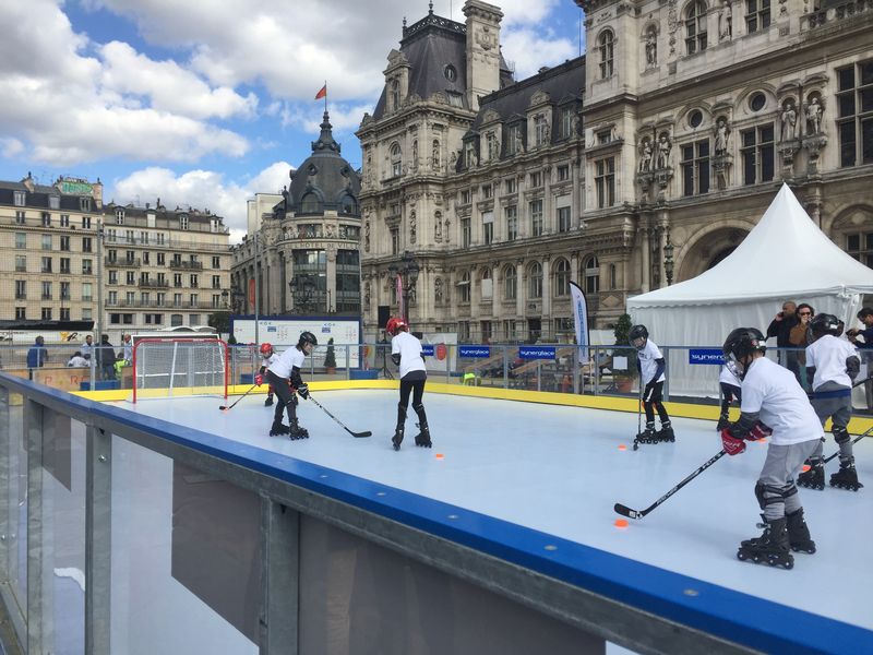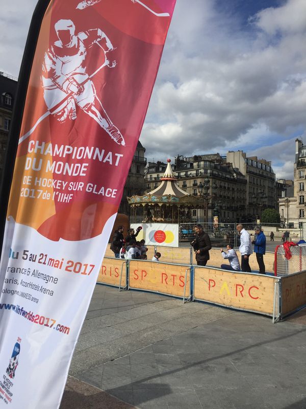 Dans la perspective de l’accueil à Paris du 81ème Championnat du Monde de Hockey sur Glace 2017 de l’IIHF du 5 au 21 mai 2017, Paris propose aux Parisiens, aux Parisiennes et aux visiteurs de jouer au hockey sur le Paris Sports Parc, structure itinérante réalisée par les directions de la Ville de Paris. Modulable et réutilisable, ce dispositif éco-conçu et innovant, issu de l’héritage de l’UEFA EURO 2016, a été pensé dans une logique pérenne de promotion des grands événements sportifs internationaux accueillis dans la capitale et a déjà profité aux Parisiens et ses visiteurs quelques mois avant le Championnat du Monde 2017 de Handball masculin IHF.