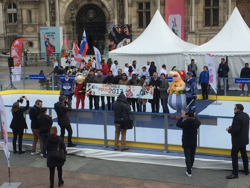 Merci à tous les sportifs présents à l’Hôtel de Ville de @Paris pour leur message de soutien au CM2017 @IIHFHockey #EnsemblePour2017 pic.twitter.com/kyYlH5FYav