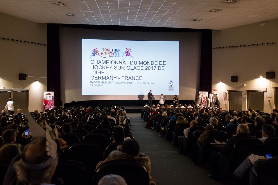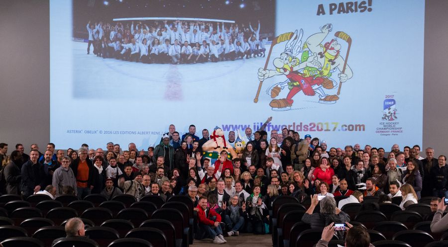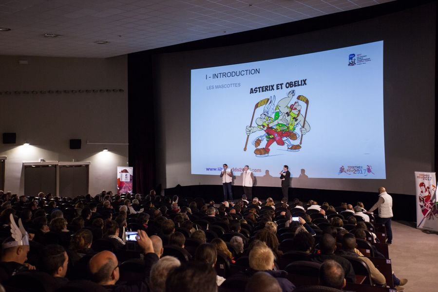 Ce samedi 22 avril a eu lieu le premier rassemblement du Programme Volontaires du Championnat du Monde de Hockey sur Glace 2017 de l’IIHF. Ainsi, près de 300 personnes se sont retrouvées au Parc Astérix pour une journée formatrice et dont le maître-mot était la convialité. Outre Astérix et Obélix, mascottes officielles du CM 2017, des sportifs étaient présents pour rencontrer les Volontaires : la boxeuse Sarah Ourahmoune, l’athlète Marie-José Pérec, la sauteuse à la perche Vanessa Boslak et le hockeyeur Pierrick Maia.
