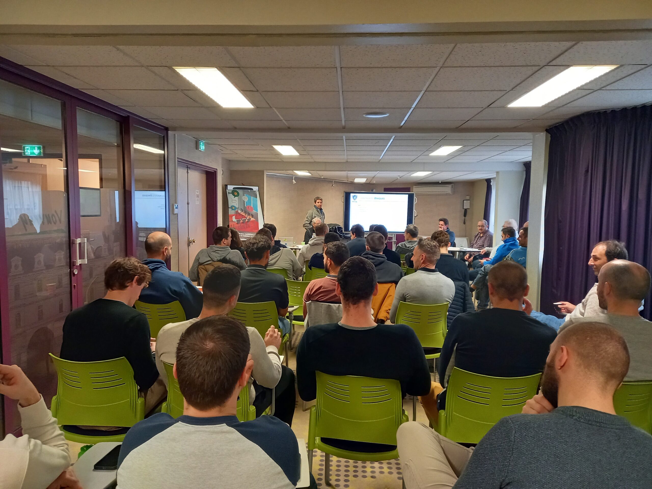Ce samedi 10 et dimanche 11 décembre, à l’occasion du stage d’arbitrage à Tours, 30 arbitres évoluant en système à 4 étaient rassemblés afin de faire le point sportif sur le début de saison, l’uniformatisation de l’application du règlement et l’application des dernières directives adressées par l’IIHF. Des tests physiques sur glace ont aussi été réalisés sur ce stage. La CARJ (Commission Arbitrage et Règles de Jeu) tient à remercier le club de Tours pour leur accueil.