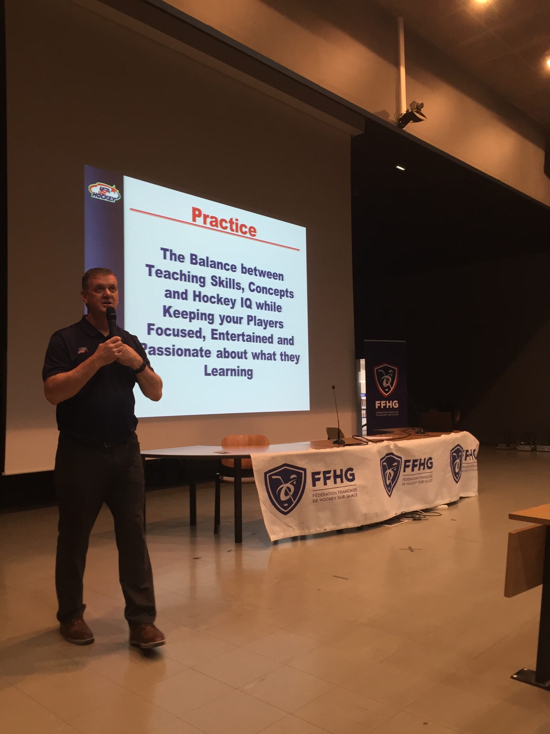 • La formation continue des entraineurs du 19 au 21 mai. Les techniciens ont reçu la visite de plusieurs intervenants : Fabrice Hurth, pour l’arbitrage ; Patricia Costantini, pour la mixité ; et Scott Paluch et Ken Martel, deux entraîneurs américains de USA Hockey, venus transmettre leurs savoirs aux participants.