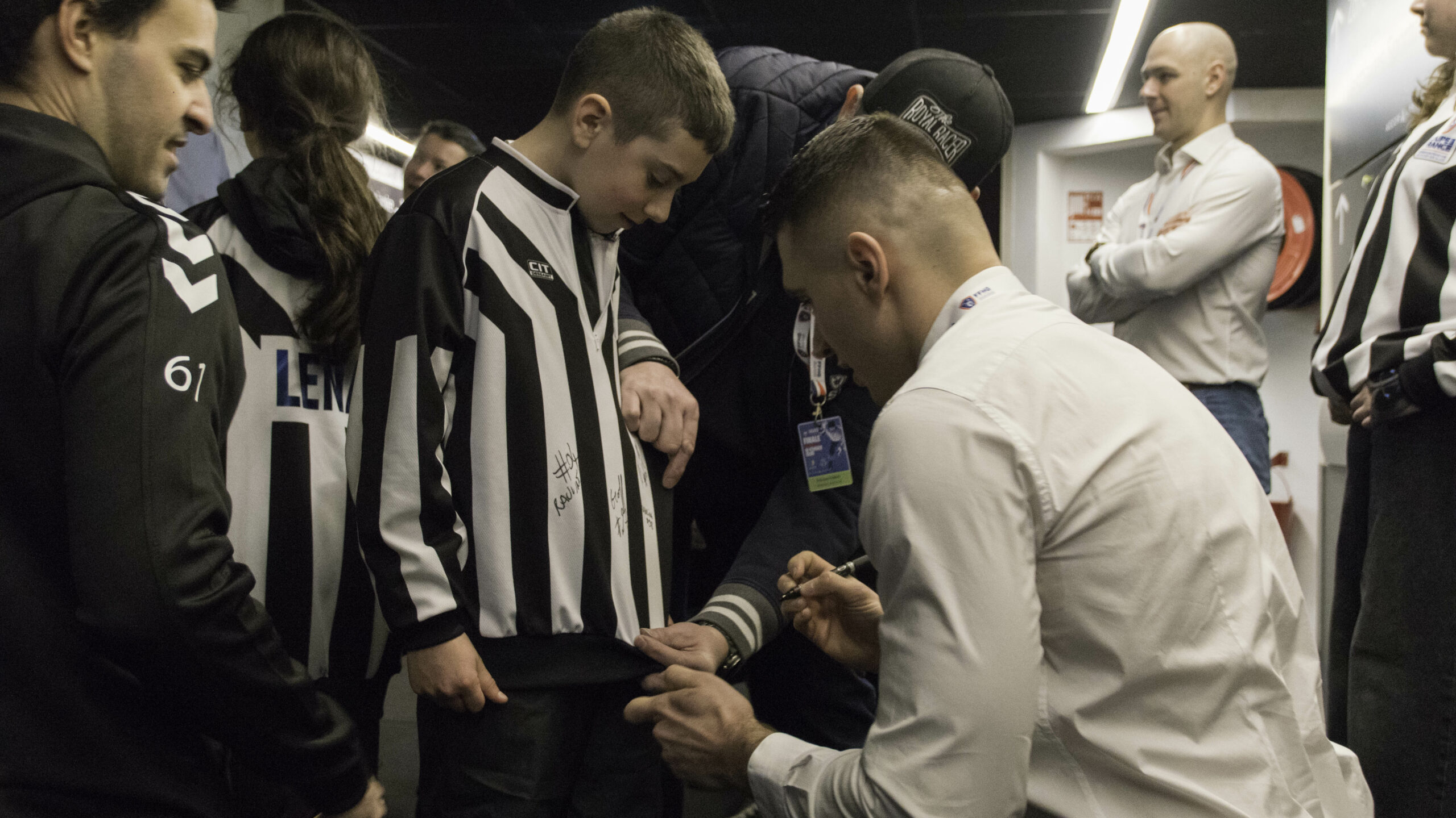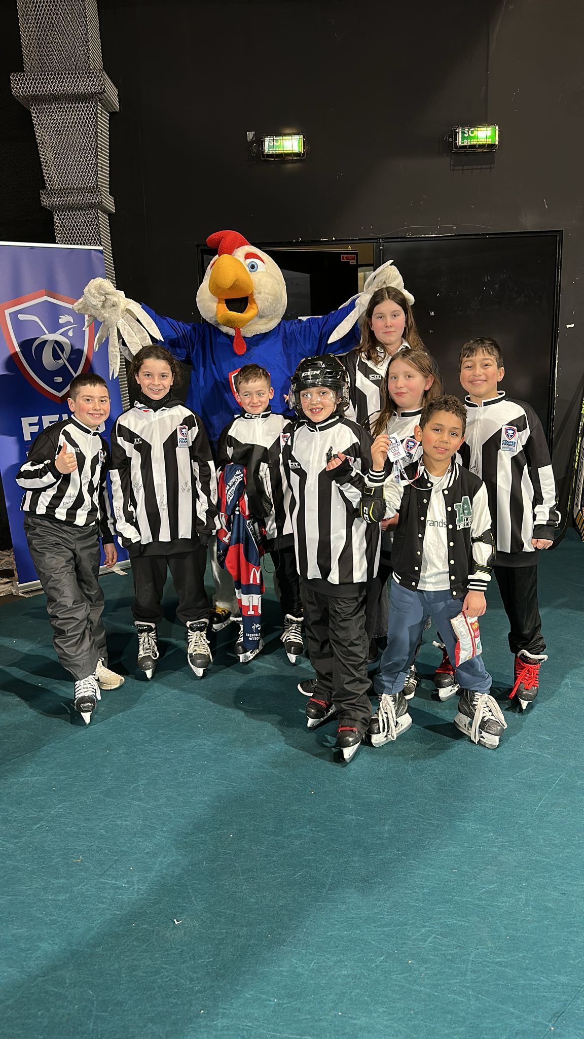 En marge de la finale, les jeunes arbitres ont également pu échanger dans le vestiaire avec les cinq arbitres officiels de la finale du dimanche entre Angers et Grenoble (3-2). Une occasion idéale pour poser des questions et faire quelques photos !