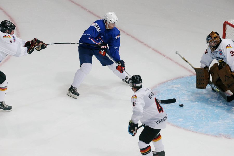 Ce dimanche 17 avril, le Match des Légendes, opposition entre les anciens internationaux français et allemands, s’est déroulé avant le coup d’envoi de France-Danemark. Bénéficiant des commentaires de Laurent Bellet, journaliste de France Télévisions, cette affiche de gala a eu lieu dans une belle atmosphère à l’AccorHotels Arena. Bien que le score soit anecdotique, l’équipe française s’est imposée 3-1 grâce à des buts de Vincent Bachet, François Rozenthal et Antoine Lussier.