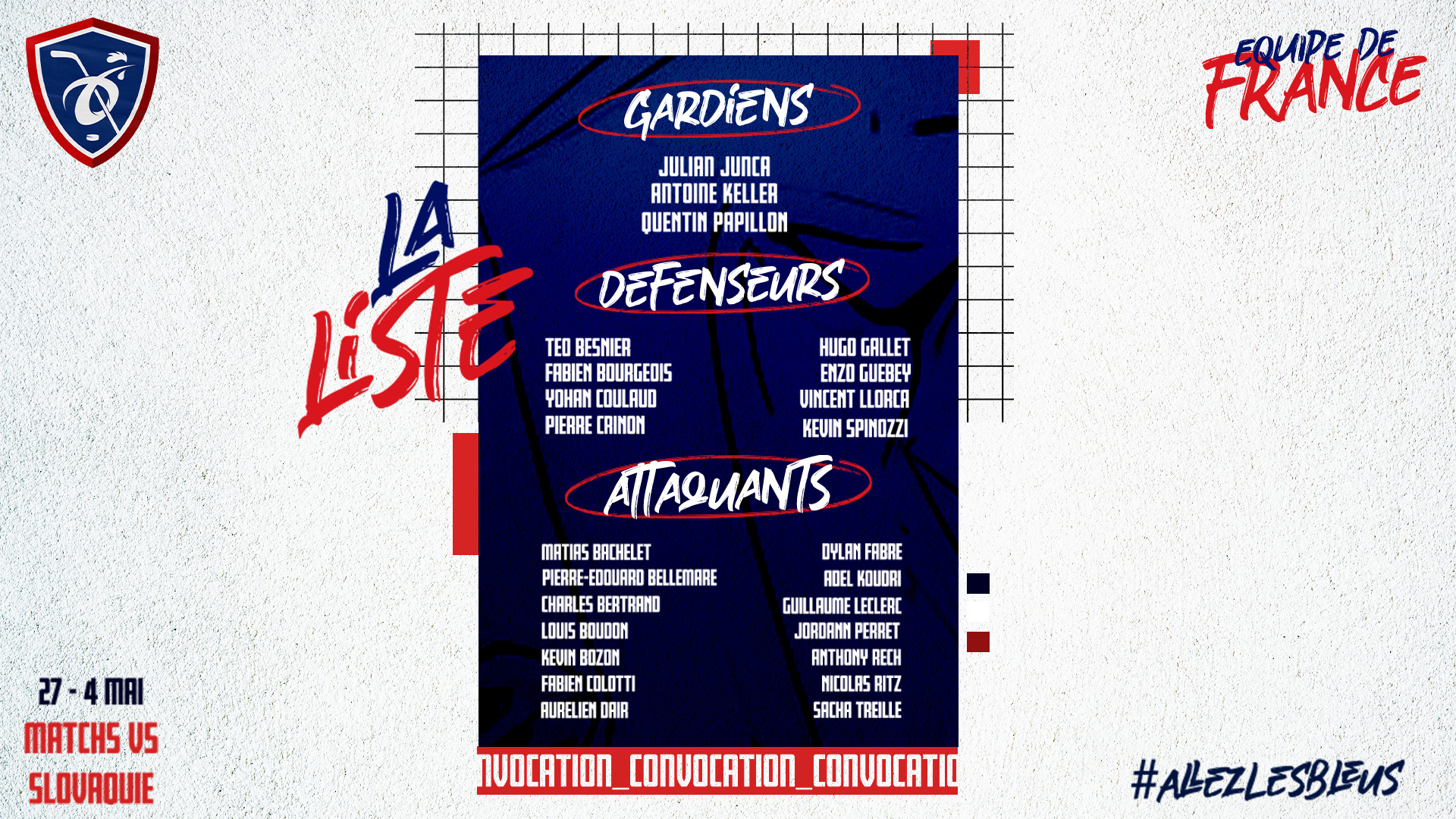Les Bleus entament, en Slovaquie, leur dernière semaine de préparation au Mondial Elite de Stockholm. Les 25 joueurs convoqués par Yorick Treille seront à Zvolen pour un stage suivi de deux matchs contre la Slovaquie vendredi et samedi.