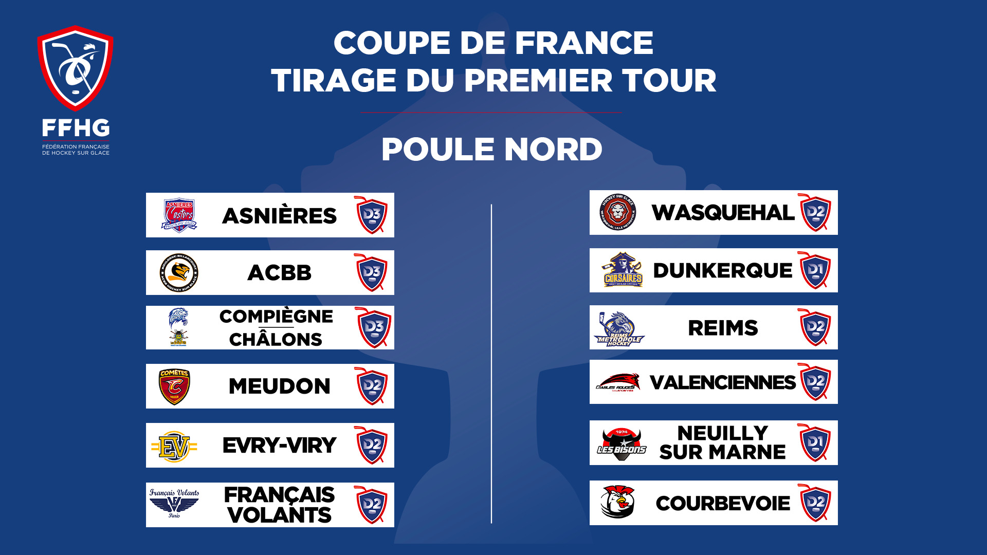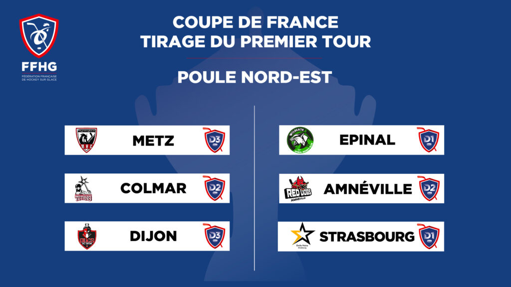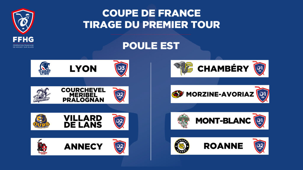 Dans la poule Est, Lyon (D3) accueillera Chambéry (D1), Courchevel Méribel Pralognan (D2) réceptionnera le promu de D1 Morzine-Avoriaz, et Mont Blanc (D1) se rendra à Villard-de-Lans (D2). Enfin, les deux pensionnaires de D2 Annecy et Roanne se battront pour rejoindre le prochain tour.