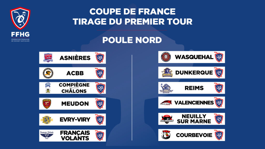 Le tirage au sort du 1er Tour de la Coupe de France se déroulait ce lundi 12 septembre à l’Aren’Ice de Cergy-Pontoise, en compagnie de Luc Mainfray (responsable de la compétition) et Lucie Quarto (internationale de l’équipe de France féminine). Découvrez les 20 affiches qui se disputeront le samedi 1er octobre. Les équipes de Synerglace Ligue Magnus rentreront elles en lice à partir des 16ème de finale.
