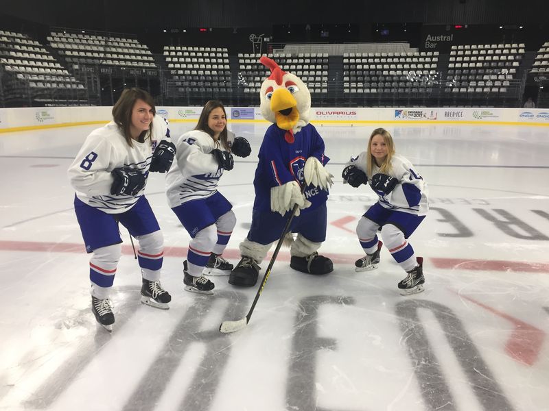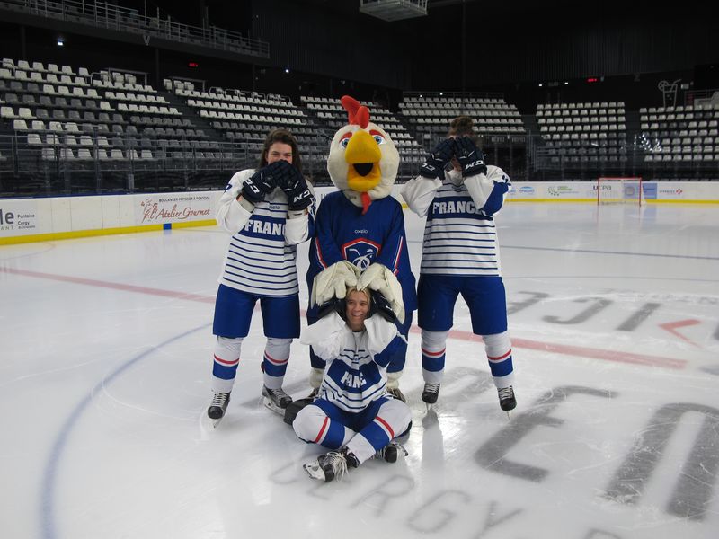 Ce mardi 13 décembre 2016, à l’Aren’Ice de Cergy-Pontoise, Oscar – la mascotte de l’équipe de France – a rendu visite aux Bleues. Profitant de la séance photo officielle réalisée dans le cadre du Tournoi préliminaire de qualification olympique, notre mascotte a pris la pose avec nos Tricolores ! Un moment de détente avant d’entamer la compétition ce jeudi 15 décembre…